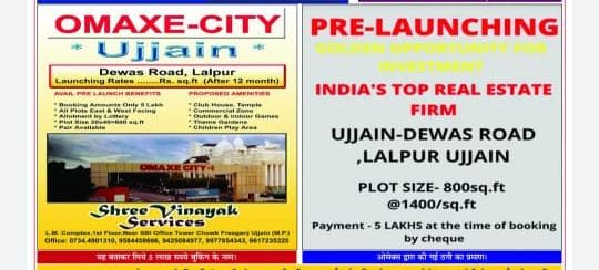 उज्जैन…..दिल्ली की एक कन्स्ट्रक्शन कंपनी श्री विनायक सर्विस ने उज्जैन के देवास रोड स्थित नागझिरी क्षेत्र में लालपुर के समीप मायानगरी का मायाजाल बिछाया है जिसका नाम रखा है ओमैक्स सिटी। इस मायाजाल में शहर के कई भोले भाले उपभोक्ता झांसे में आ कर करोड़ों रुपए फंसा चुके हैं…दरअसल इंदौर में कलेक्टर मनीष सिंह की सख़्ती से भाग कर उज्जैन की ओर इस कंपनी ने रूख़ किया और अपने झांसे का जाल फैला कर लोगों को ठगने की कारगुजारी को अंजाम दे डाला…इंदौर की तर्ज़ पर डाउन शिप बसाने के सब्ज़बाग दिखाने वाली श्री विनायक कम्पनी ने लोगों को फंसाने के लिए फ्रीगंज टॉवर के सामने एलएम कॉम्प्लेक्स में बाकायदा ऑफिस खोल कर इस झाँसेबाजी को अंजाम दिया जा रहाहै। यहाँ से 20 बाय 40 के भूखंडों की बुकिंग की जा रही है वहीं स्पॉट लालपुर पर भी एजेंट बुकिंग करने में लगे हुए हैं। 5 लाख की राशि लेकर बुकिंग की जा रही है और आश्चर्य इस बात का है कि खरीदी गई ज़मीन से अधिक भूखंड बाज़ार में बेचे जा रहे हैं जिससे बाद अगर कॉलोनी कट भी गई तो खरीदारों में विवाद होने लाज़मी हैं। 20×40 का प्लॉट 1400 रुपए स्केयर फिट के हिसाब से 11 लाख 20 में बेचे जा रहे हैं और एडवांस 5 लाख जमा करवा कर शेष राशि किश्तों में वसूली जाएगी।