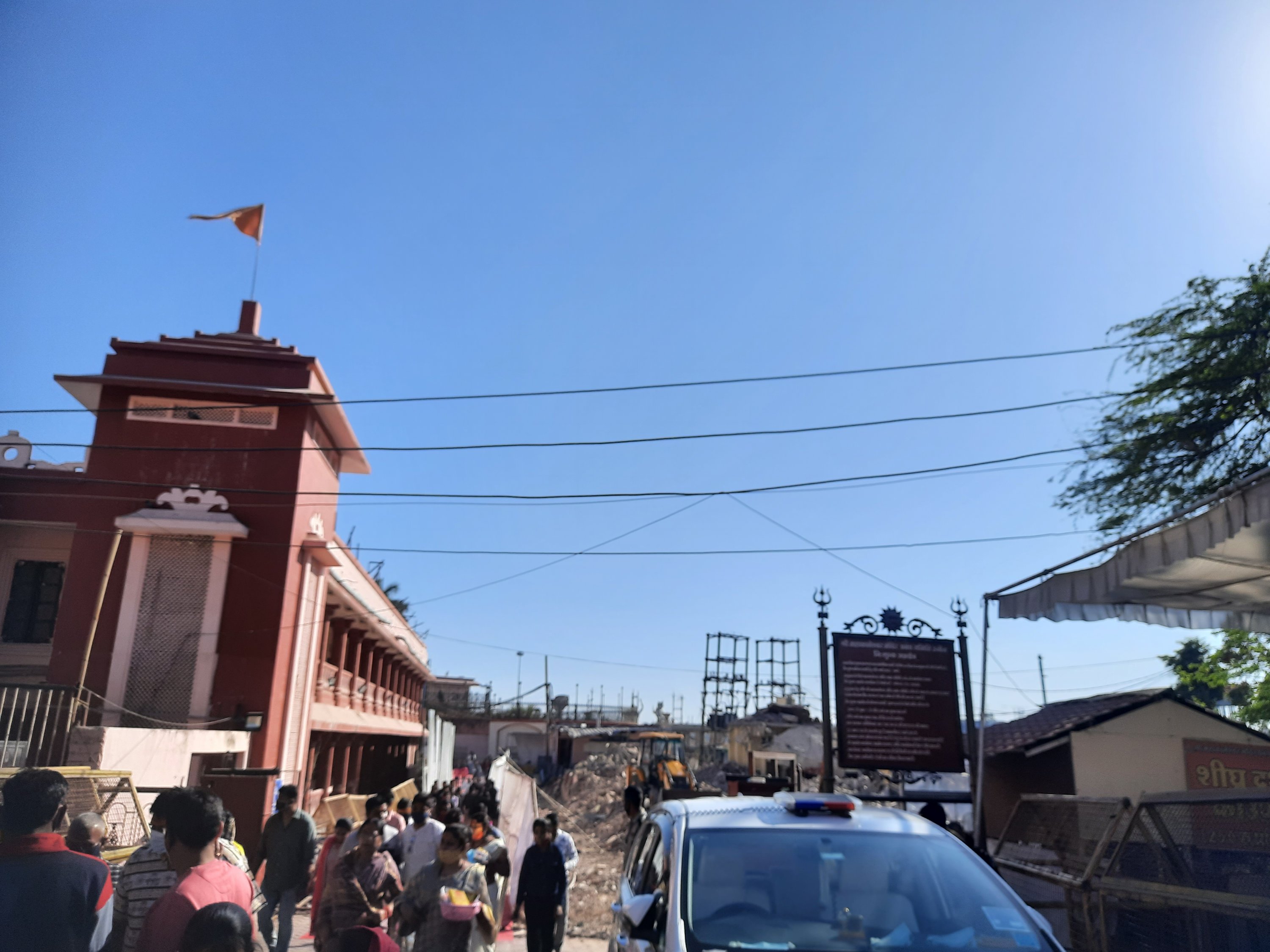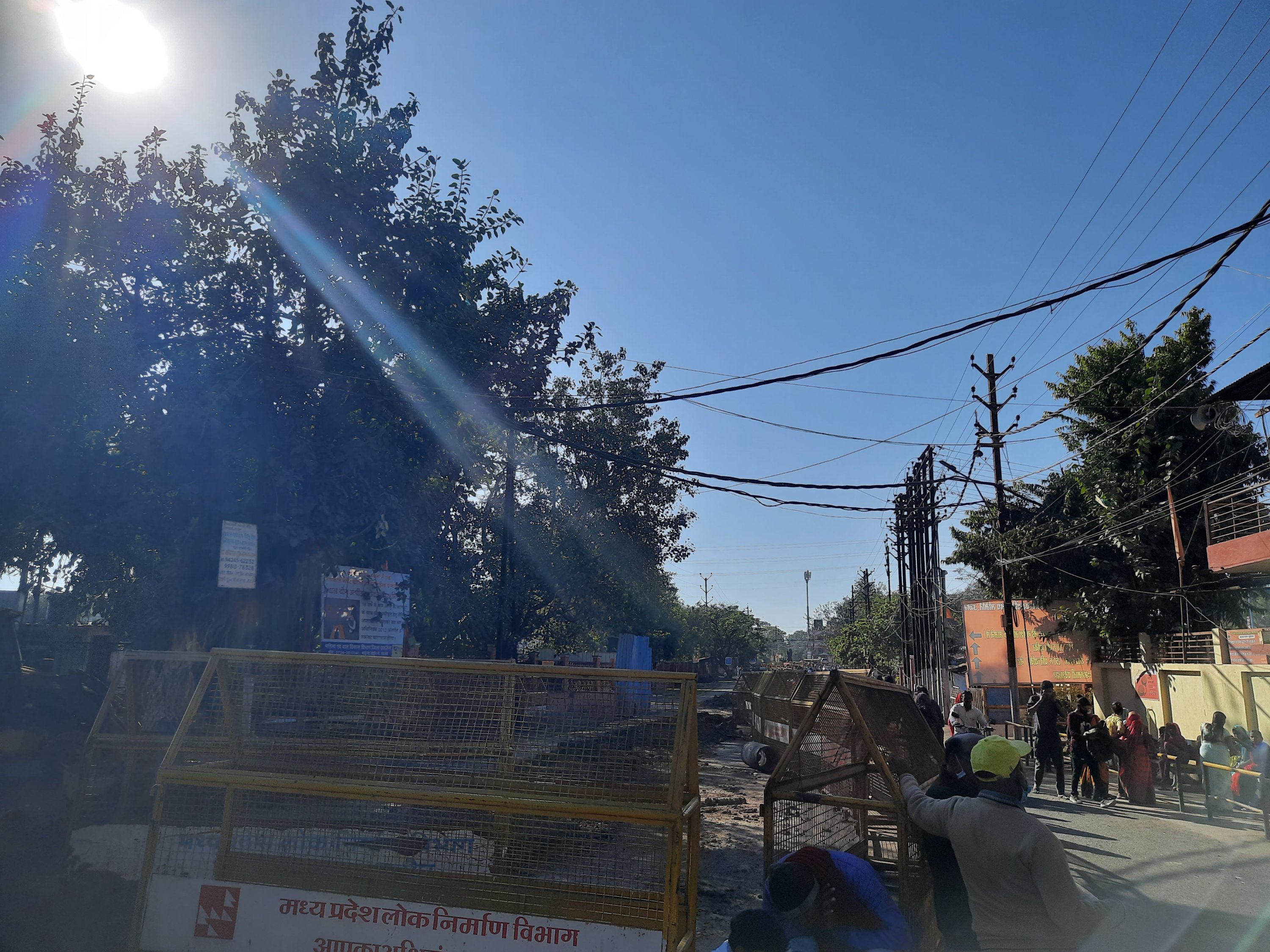 भारत माता मंदिर से लेकर महाकाल थाने महाकालेश्वर मंदिर परिसर विस्तारीकरण के चलते उज्जैन विकास प्राधिकरण मंदिर के सामने के हिस्से का निर्माण कर रहा है वहीं मंदिर के सामने 70 मीटर के चौड़ीकरण के चलते हैं अनेक मकान तोड़े गए हैं जिसका मलवा पूरे क्षेत्र में फैला हुआ है जिसके चलते पूरा मार्ग ब्लॉक हो रहा है और महाकालेश्वर मंदिर के सामने से श्रद्धालुओं को मंदिर पहुंचने का मार्ग बंद किया गया है।