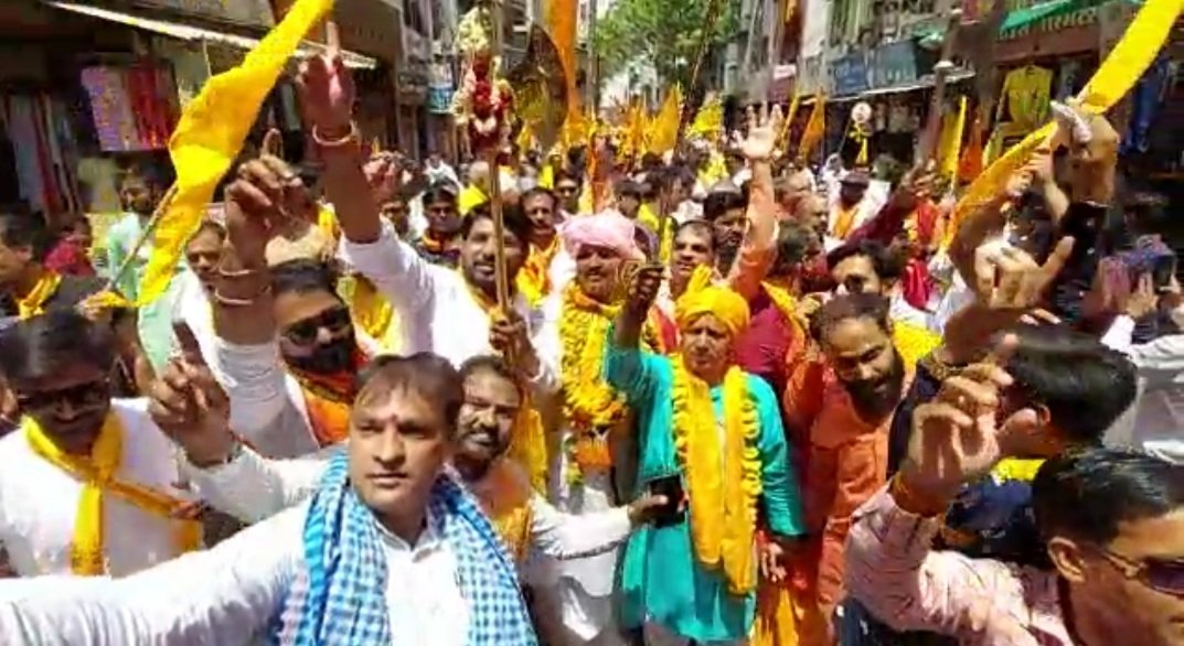 उज्जैन,भगवान परशुराम जन्मोत्सव पर मंगलवार को महाकालेश्वर मंदिर से भव्य श्री परशुराम यात्रा और चल समारोह निकला ,जो गुदरी चौराहा पटनी बाजार, गोपाल मंदिर ,सर्राफा, कंठाल, नई सड़क, दौलत गंज मालीपुरा ,चामुंडा चौराहा ,फ्रीगंज ओवर ब्रिज होता हुआ टावर चौक पहुंचा