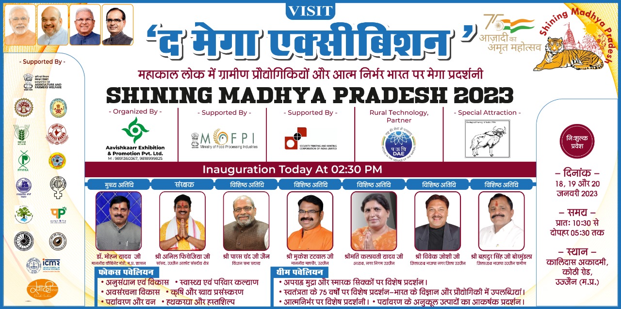 एग्जीबिशन का शुभारंभ दीप प्रज्वलित कर उच्च शिक्षा मंत्री मोहन यादव, उज्जैन आलोट सांसद अनिल फिरोजिया महापौर मुकेश टटवाल, नगर निगम सभापति श्रीमती कलावती यादव, उज्जैन शहर भाजपा अध्यक्ष विवेक जोशी, उज्जैन ग्रामीण भाजपा अध्यक्ष बहादुर सिंह बोर मुंडला के द्वारा किया गया।