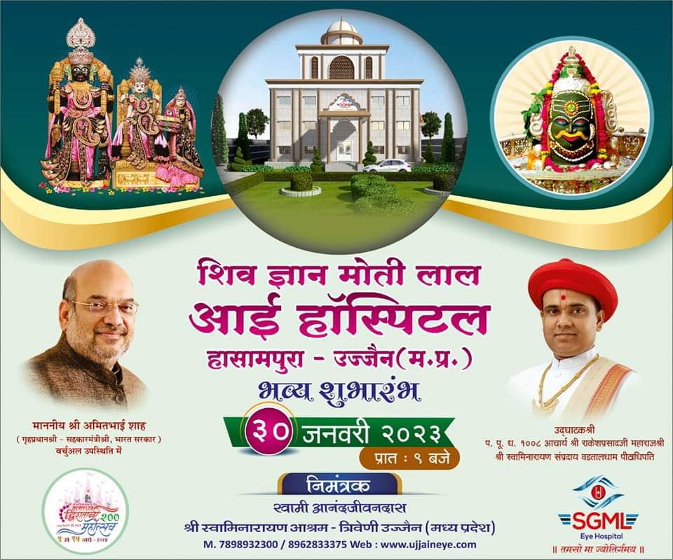 उज्जैन,गृह मंत्री अमित शाह की वर्चुअल उपस्थिति में ३० जनवरी को शिव ज्ञान मोती लाल (एसजीएमएल) आई हॉस्पिटल का शुभारंभ श्रीस्वामीनारायण संप्रदाय वड़तालधाम के पीठाधिपति परम पूज्य 1008 आचार्य श्री राकेशप्रसादजी महाराज द्वारा होगा